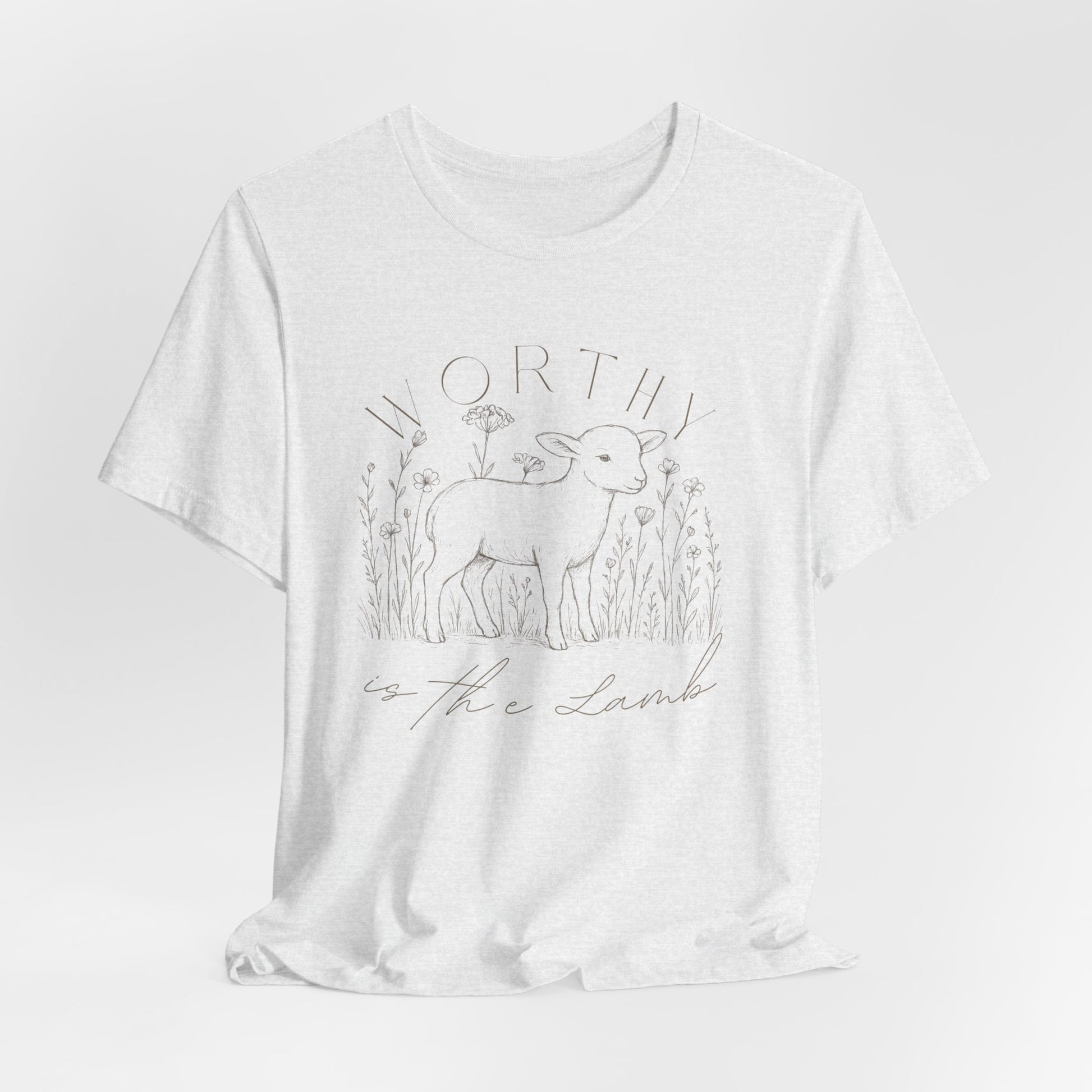 A soft, breathable tee that feels like a quiet walk through meadow grass at dawn. The lightweight Airlume cotton drapes gently, while the subtle, nature-inspired line art on the front — a lamb standing among wildflowers with delicate hand-lettered text — gives the shirt a calm, thoughtful presence. Wear it layered under a flannel or alone with high-waisted jeans; it reads like a small, wearable story for people who slow down to notice details. Thoughtful construction (side seams, ribbed collar, shoulder tape) keeps the shape through repeated wear and washings. REACH-certified materials and a tear-away label keep comfort and ethics front and center.